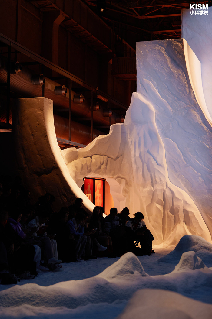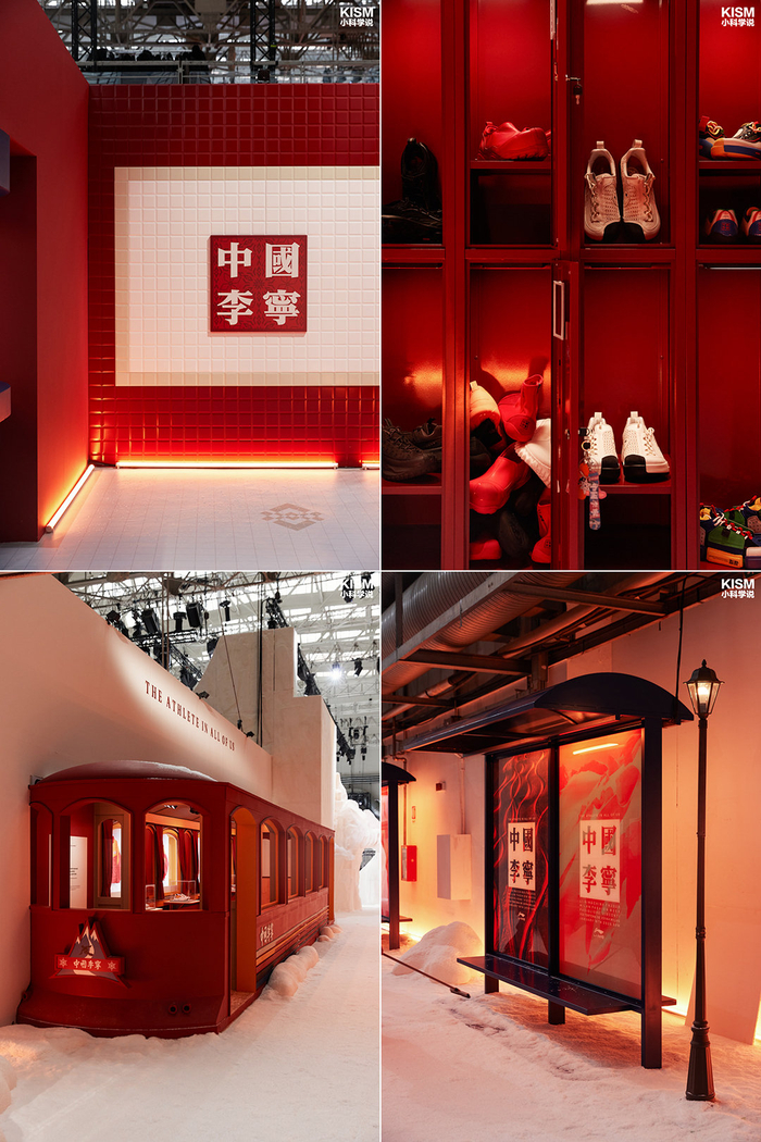 秀场进门,中国李宁把入口打造成了一个充满复古气息的高山火车站,预设出一条循序渐进的沉浸式氛围道路,通往“冰雪竞技场”空间。从雪场检票口、站台指引牌到候车厅一并安排,但最重要的是储物柜以及承载中国体育荣耀时刻的时光列车,这部分强烈大家看视频...