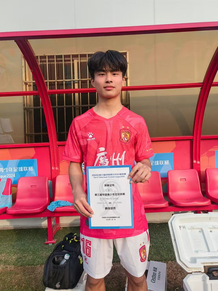 杨黔东是恒大足校培养的2008年龄段的优秀学员之一,于2017年进入恒大足校学习,杨黔东曾经多次入选U15、U16、U17各级国字号球队,参加过2023年东亚足联U15锦标赛,去年代表中国U17男足参加了2025年亚足联U17亚洲杯预选赛,获得出场机会。