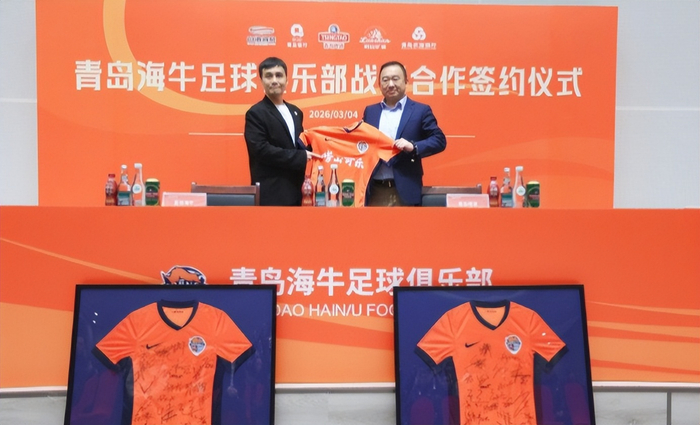 2026年3月5日,据《青岛日报》报道,由于崂山可乐的慷慨解囊,因此今年青岛海牛的预算非常充裕。就在昨天进行的新闻发布会上,青岛海牛新赛季主客场球衣的胸前广告正式揭晓,崂山可乐将跟随青岛海牛征战2026赛季中超联赛。记者孙飞表示,崂山可乐与青岛海牛早已成为青岛的两大城市符号,这次也是自2023赛季重返中超联赛以后,青岛海牛球衣首次出现胸前商业广告。