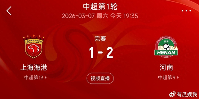 3月7日晚,2026赛季中超首轮迎来焦点对决,卫冕冠军上海海港坐镇浦东足球场,以1-2不敌河南队,遭遇赛季开门黑。同一日,同城死敌上海申花在主场5-3力克大连英博,火力全开拿下首胜。一场失利、一场大胜,上海德比的天平在赛季初就发生倾斜,海港的卫冕之路刚起步就亮起红灯。