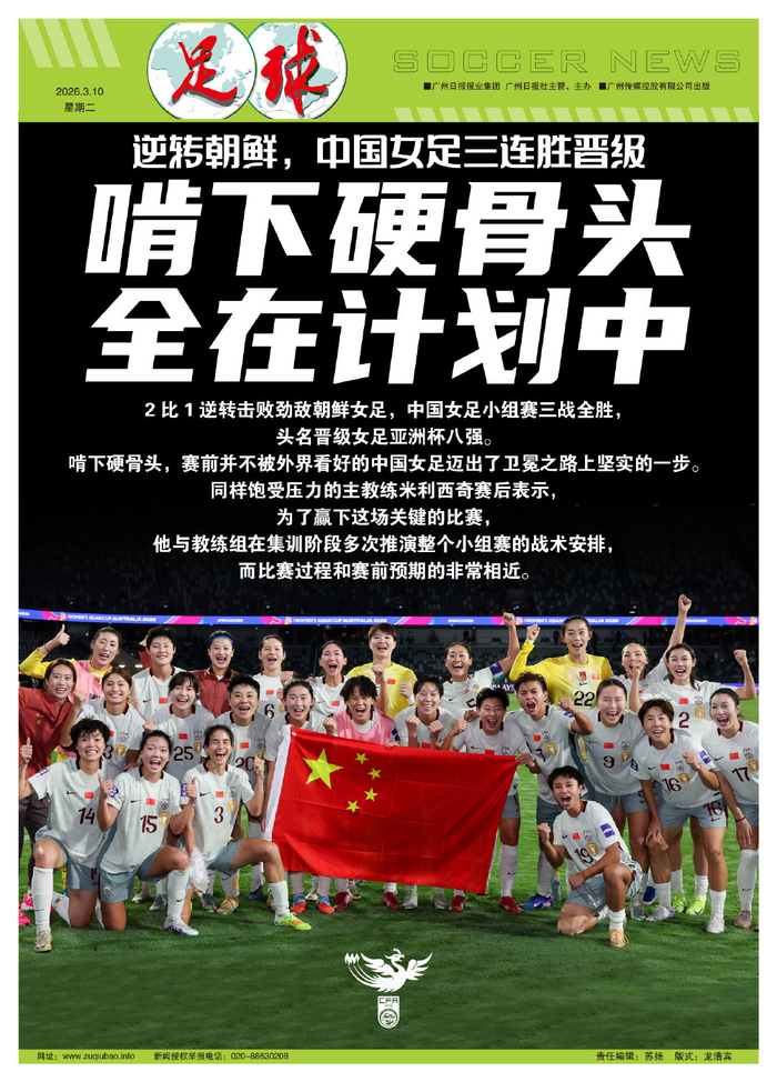 记者王伟报道3月9日的悉尼雨夜,中国女足在女足亚洲杯小组赛B组最后一轮比赛中,以2比1逆转击败劲敌朝鲜女足,小组赛三战全胜,头名晋级八强。