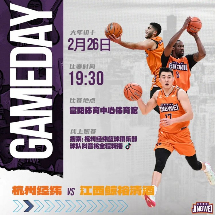 明日19:30 对阵江西鲸裕清酒